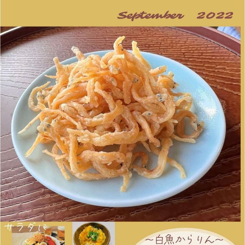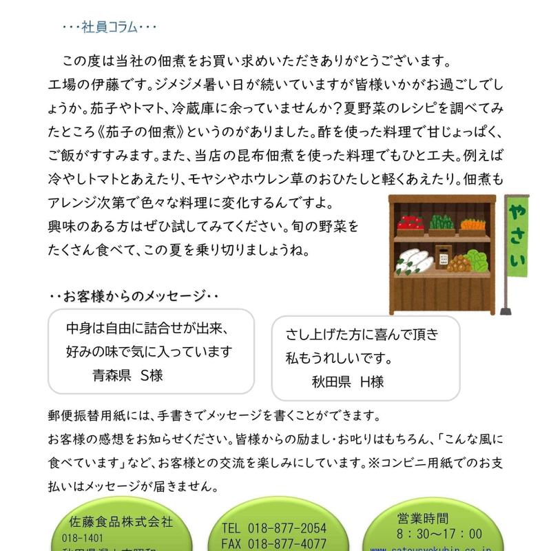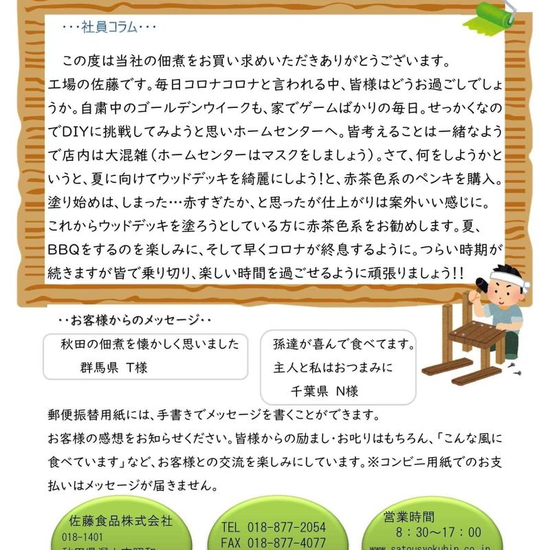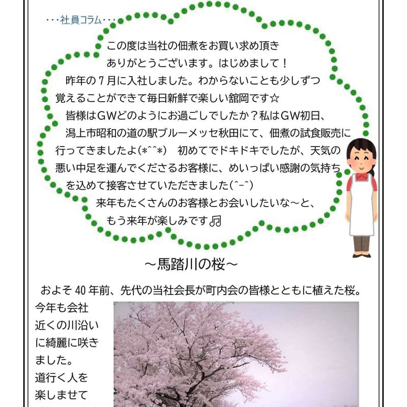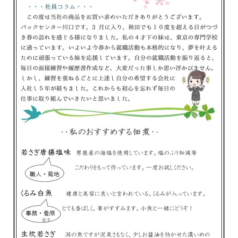 今回は今号の表紙にも掲載されている「いかあられ」の話をします。「いかあられ」はするめいかをローラーで伸ばして(1パイのイカ を 1~2mまで伸ばします!)柔らかくした後、一口サイズに短冊切りにして甘く炊いた商品です。昔からの定番商品で、お茶請けにも人気ですね。