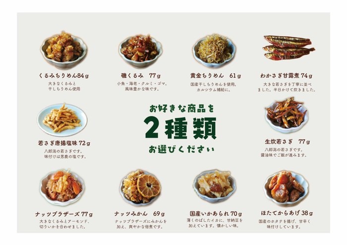 「佃煮詰め体験」 伝統の佃煮を詰めて、そのままお土産に! 文化庁が認める100年フード「秋田の佃煮」の歴史を簡単に学びながら体験! 好きな佃煮を2種類選び、 自分で詰めてお持ち帰りいただけます。店内にはカフェも併設されているので、ごゆっくりおくつろぎください。 料金:1,650円(税込み)※佃煮お土産代込み 時期・時間:9時から17時 予約:事前予約推奨※受入は2名から。 ※12月や繁忙期は体験休止しております。事前にご予約ください。 ※インフルエンザ・感染症等の状況をふまえて体験をお断りする場合がございます。 ※詳細は電話でお問い合わせください。 018-877-2054